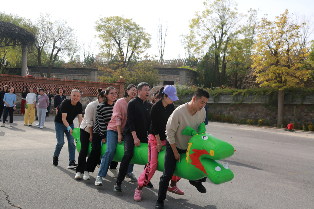 活动伊始,全体人员在园区内进行了全程1公里的健步走,欣赏贺兰山下的金秋美景。随后,“一圈到底”“旋转接力”“猜拳过河”“毛毛虫竞速”4项趣味项目轮番上阵。职工们分组协作、默契配合,在呼啦圈传递、布带旋转、猜拳闯关和毛毛虫骑行中尽情释放激情与活力,赛场气氛热烈,笑声与加油声此起彼伏,充分展现了血站人团结拼搏、积极向上的精神风貌。中午,大家围坐一起,享用温馨的“营地小火锅”,畅谈比赛趣事,交流工作生活,进一步增进了彼此的情谊。