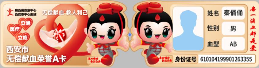 西安“无偿献血荣誉卡”正式落地,A卡首发!