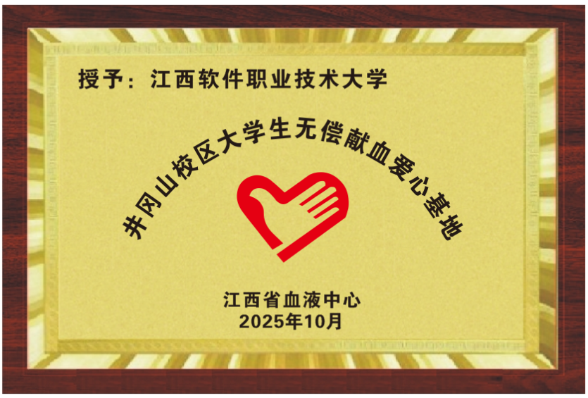 (江西省血液中心授予江西软件职业技术大学南昌校区和井冈山校区爱心基地牌匾)