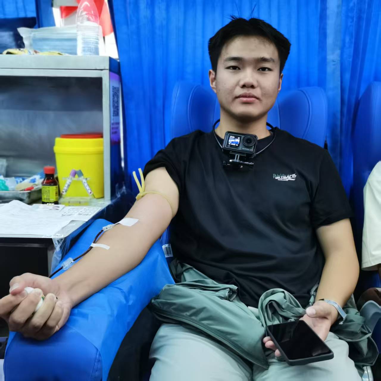 “看着自己的血液缓缓流入血袋,突然明白老师用行动教会我们的,比课堂上的知识更深刻——这才是我们大学生该有的‘成人礼’,用一点勇气,换别人一次生的希望。”从认真填写登记表、耐心接受健康征询,到配合完成血液初筛、有序进行静脉采血,现场每个环节都秩序井然,学子们脸上虽有初次献血的些许紧张,更多的却是受教师榜样激励后的笃定与自豪,他们紧紧追随着老师的脚步,用可再生的血液,为素不相识的陌生人续航生命。