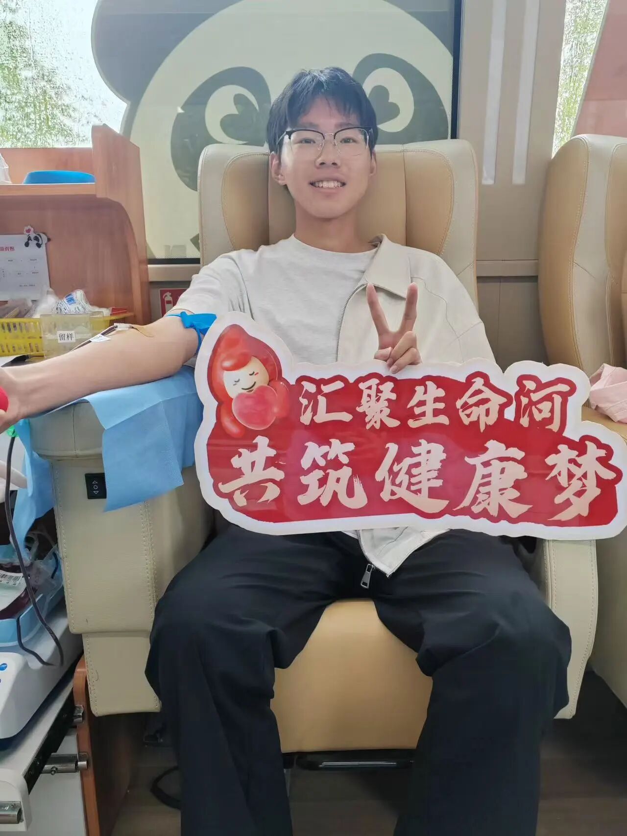 尽管天空阴沉、细雨时至,但师生们的参与热情丝毫未减。献血车前的队伍井然有序,从清晨到傍晚,爱心接力从未间断。一张张年轻的面庞上,写满了坚定与热忱——有第一次鼓起勇气挽袖的新生,眼中带着紧张,更多的是为能献出一份力量而感到的自豪;也有连续多年坚持献血的“老将”,从容登车,用行动诠释着医学生的仁心与使命。