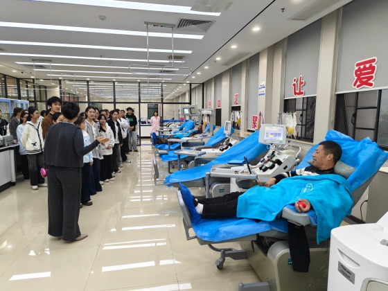 活动现场,在血站志愿者的引导下,同学们深入发血科、机采科、成分科、检验科,直观感受一袋血液从采集到检测、分离、储存的“生命”旅程。参观过程中,精密仪器的运转、规范严谨的流程、献血志愿者无言的善举,每一环节都关乎生命救治,让同学们震撼不已。