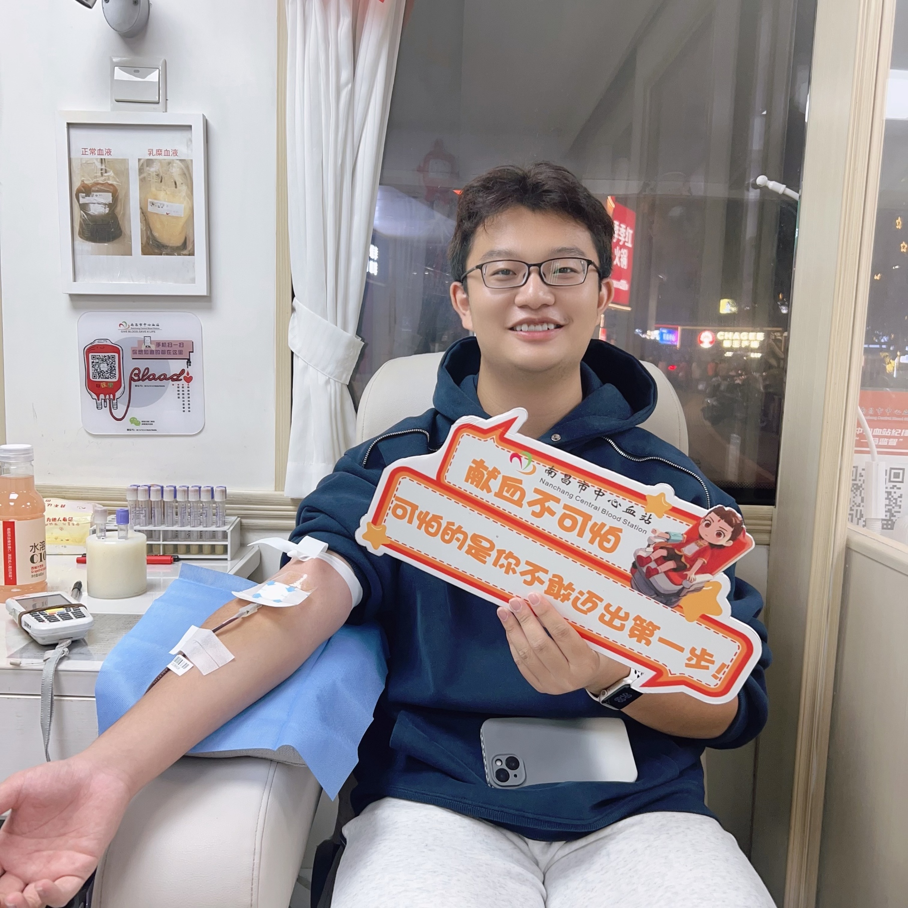 饶泽曦,他是我站工作人员的弟弟,现就读于南昌大学临床专业,是一名大二学生,这是他第三次献血,累计献血1000毫升。他说:“献血不仅是为了帮助他人,更是对生命的一种尊重与珍惜。”从大一开始,他受姐姐的影响,便积极参与无偿献血活动,并深深体会到这项公益事业的重要性。每次献血前,他都会做好充分的准备。他认为,作为一名医学生,献血是他责任的一部分,也是在实践自己的职业理想。他希望通过自己的行动,能够鼓励更多的年轻人参与到无偿献血的行列中,传递爱与温暖。”