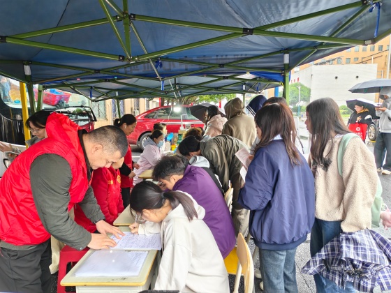 活动当天,尽管天气微凉,但学生们参与热情丝毫未减,在志愿者的引导下,前来献血的学生有序排起长队,依次进行信息登记、血压测量、血液初筛等环节,现场秩序井然,流程高效顺畅。医护人员专业严谨、操作规范,耐心解答同学们的疑问,并贴心叮嘱献血后的注意事项。