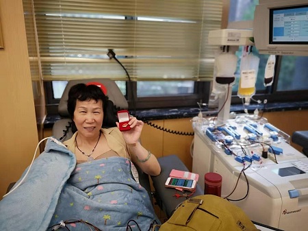 究竟是什么动力让她能如此义无反顾的坚持无偿献血呢?张美玲说:“献血是一件利人利己的好事情,只要自己身体条件允许的话,能帮助到他人,自己也会觉得很快乐!从开始接触血小板后我就一直以献满100次为自己的目标,再过几天就是我的生日,自己心愿达成在60周岁前圆满完成了,接下来会把自己的时间投身到无偿献血志愿服务当中去!"