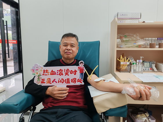 除了无偿献血者,黄思赞还有一个温暖的身份——地贫儿童口中的“黄大哥”。多年前,一次偶然的机会,他了解到地中海贫血儿童常年需要输血维持生命,便毅然加入帮扶地贫儿童的志愿队伍。他不仅定期为孩子们捐款捐物,还常常抽时间去看望孩子们,一起读书、做游戏,用温暖的陪伴驱散他们心中的阴霾。曾有孩子怯生生地问他为什么总来看望他们,他轻抚孩子的头,笑着说:“因为你们是祖国的小花,要好好长大。”在孩子们眼中,这位“黄大哥”就像一束光,照亮了他们艰难的成长路;在志愿者伙伴心中,他始终是冲在最前面的主心骨,以行动感召更多人加入爱心行列。