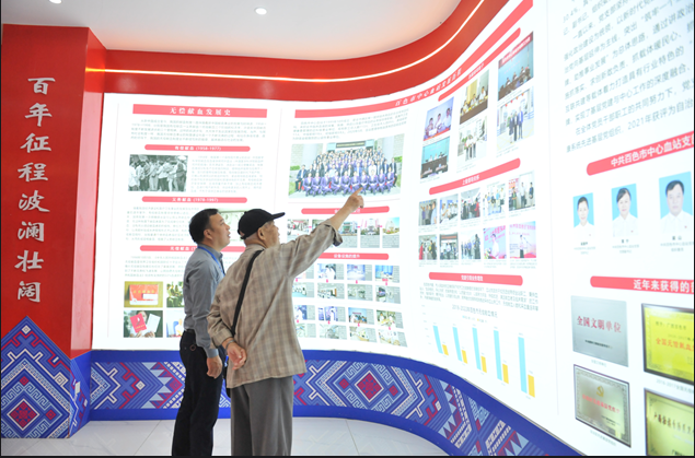 走进单位,老职工们被“党建基地”的老照片展吸引驻足,流动采血车工作照、早期实验室场景等影像,唤醒他们的共同记忆。梁山说:“你们是百色采供血事业奠基人,从简陋采血点到智慧化血站,每步发展都离不开你们的坚守,为临床用血安全筑起首道防线!”
