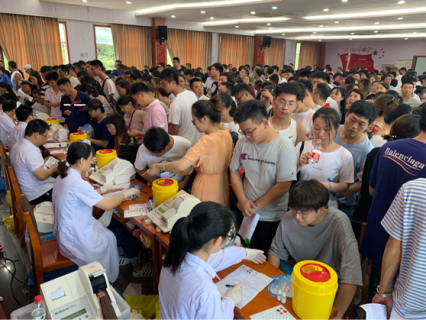 登记人数突破600人。天使团队的训练有素和超强战斗力再次显现出来。越是困难,大家越是拧成一股绳。工作人员一丝不苟地体检、化验、采集,招募人员指导填表、打表、发证,志愿者引导喝水、休息。为了减少献血者等待时间,所有工作人员顾不上擦汗、喝水、上厕所,争分夺秒,埋头苦干,毫无怨言。