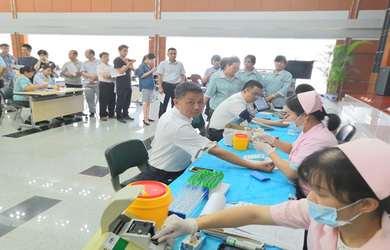 在我站发布了血液紧张的相关新闻后,中国工商银行股份有限公司安徽省分行主动联系血站,并于8月9日上午成功开展了无偿献血公益活动。9时未到,已有许多志愿者自发的前来排队。即使因为夏末的闷热而汗流浃背的赶来,依然仔细的填表、抽检,配合我站人员的工作。