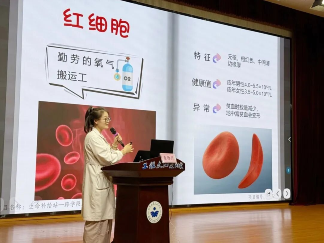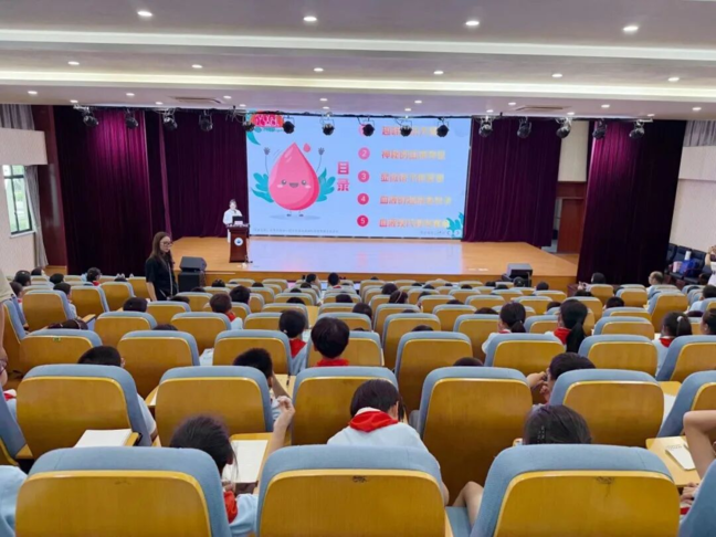 活动现场。通过趣味问答形式,用血液知识,快速点燃同学们的好奇心,让科普活动在欢声笑语中拉开序幕;血液超级身份大揭秘,讲师没有用枯燥的术语,而是把红细胞比作“快递员”,白细胞是“消防员”,血小板则是“建筑师”。当讲到“吸血鬼传说”时,孩子们都瞪大了眼睛——原来电影里的情节和科学真相差这么远!
