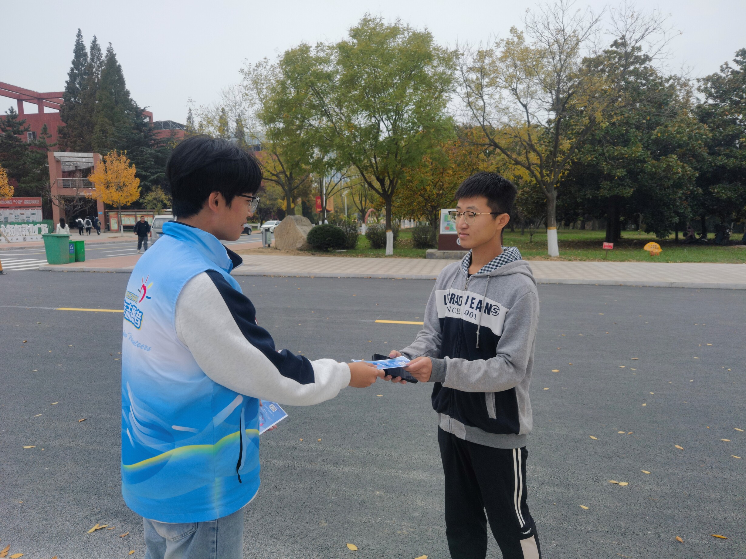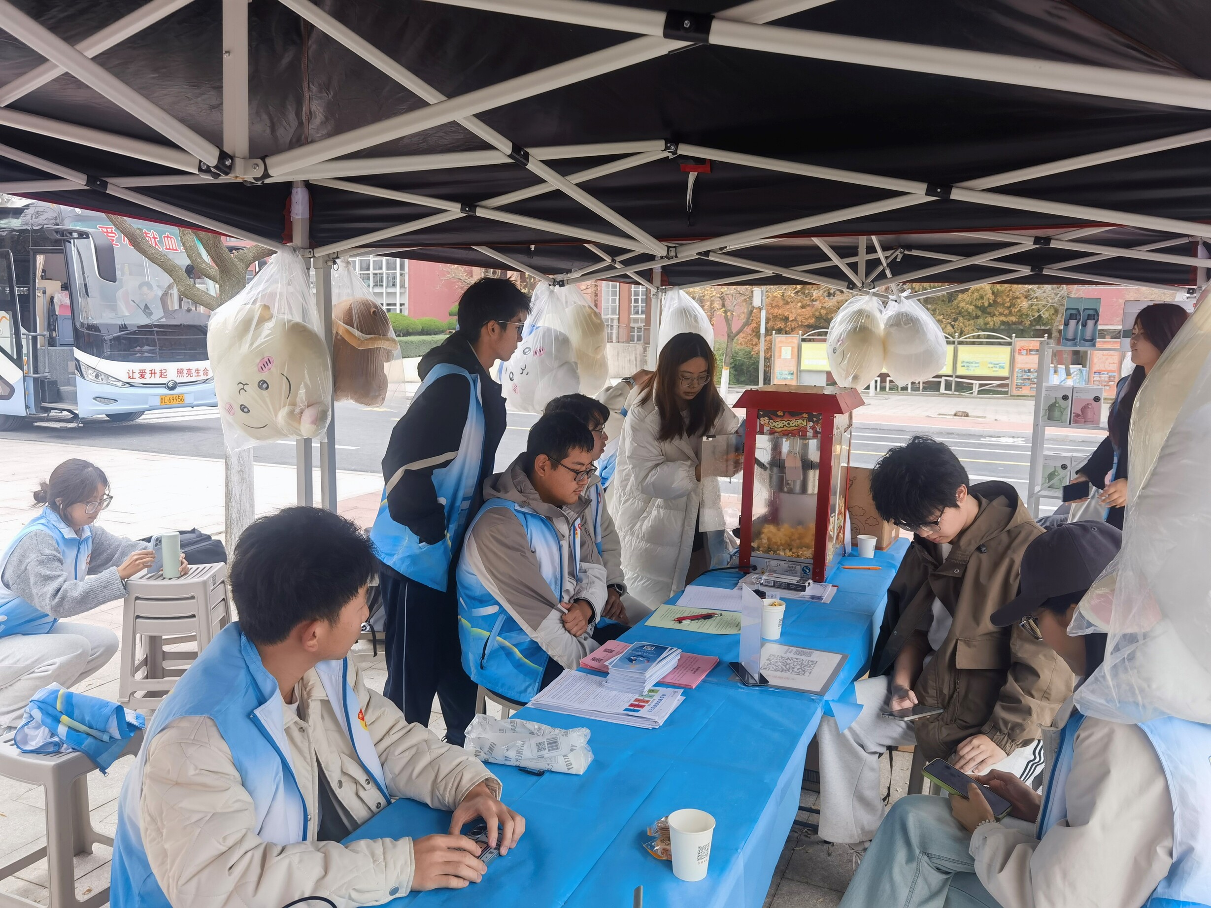 活动的顺利推进,离不开志愿者们的全情投入。他们分工明确、各司其职,既有耐心引导献血者填写信息、讲解注意事项,贴心递上温水与补给品、缓解紧张情绪,协助医护人员核对信息、维持现场秩序的现场保障组;更有主动手持宣传传单穿梭于校园角落,向过往师生普及无偿献血知识、破除认知误区、号召大家加入奉献行列的宣传小分队。志愿者们用细致服务筑牢现场保障,用积极宣传扩大爱心影响,让奉献精神在校园的每一个角落传递蔓延。