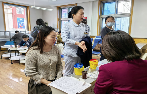 11月7日立冬,包头市气温骤降,细雨连绵,寒意浸透街巷。但包头市中心血站献血大厅内却暖意融融,包头医学院第一附属医院的医务人员们早早赶来,自发排起长队,以无偿献血的实际行动,为临床用血保障添砖加瓦。