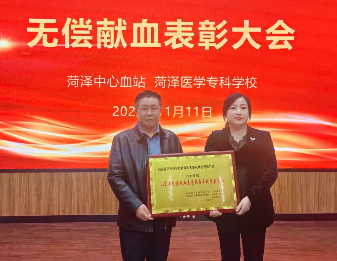 活动尾声,为表彰菏泽医学专科学校在无偿献血志愿服务工作中的突出贡献,还为该校颁发了“山东省无偿献血志愿服务表现突出集体”奖项,同时为表现优异的学生代表颁发了“山东省无偿献血志愿服务表现突出大学生”奖项。