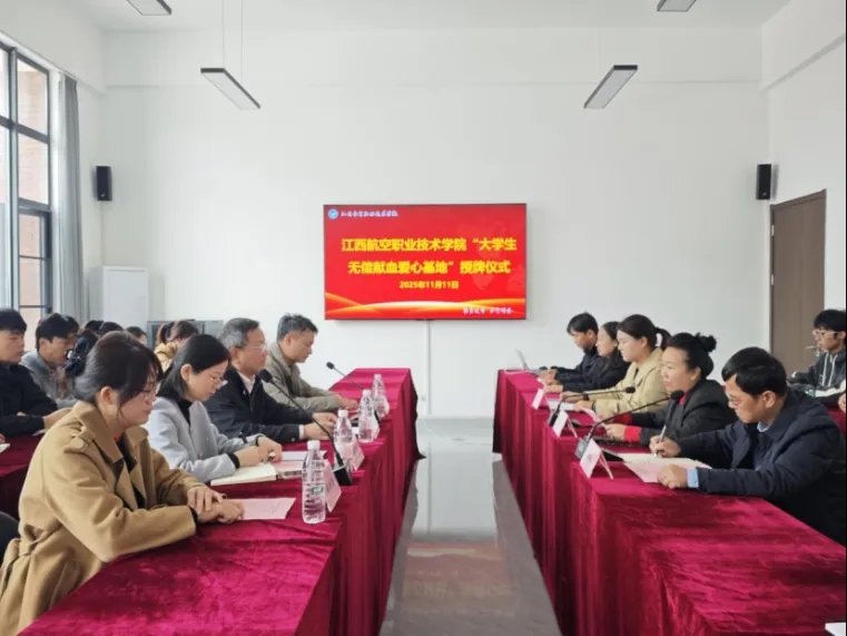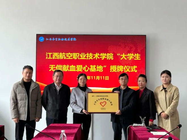 金秋送爽,爱心启航。2025年11月11日,我中心和江西航空职业技术学院携手共建的“大学生无偿献血爱心基地”授牌仪式,在江西航空职业技术学院学生事务中心三楼会议室隆重举行。这一举措为弘扬奉献精神、践行社会责任搭建了重要平台。