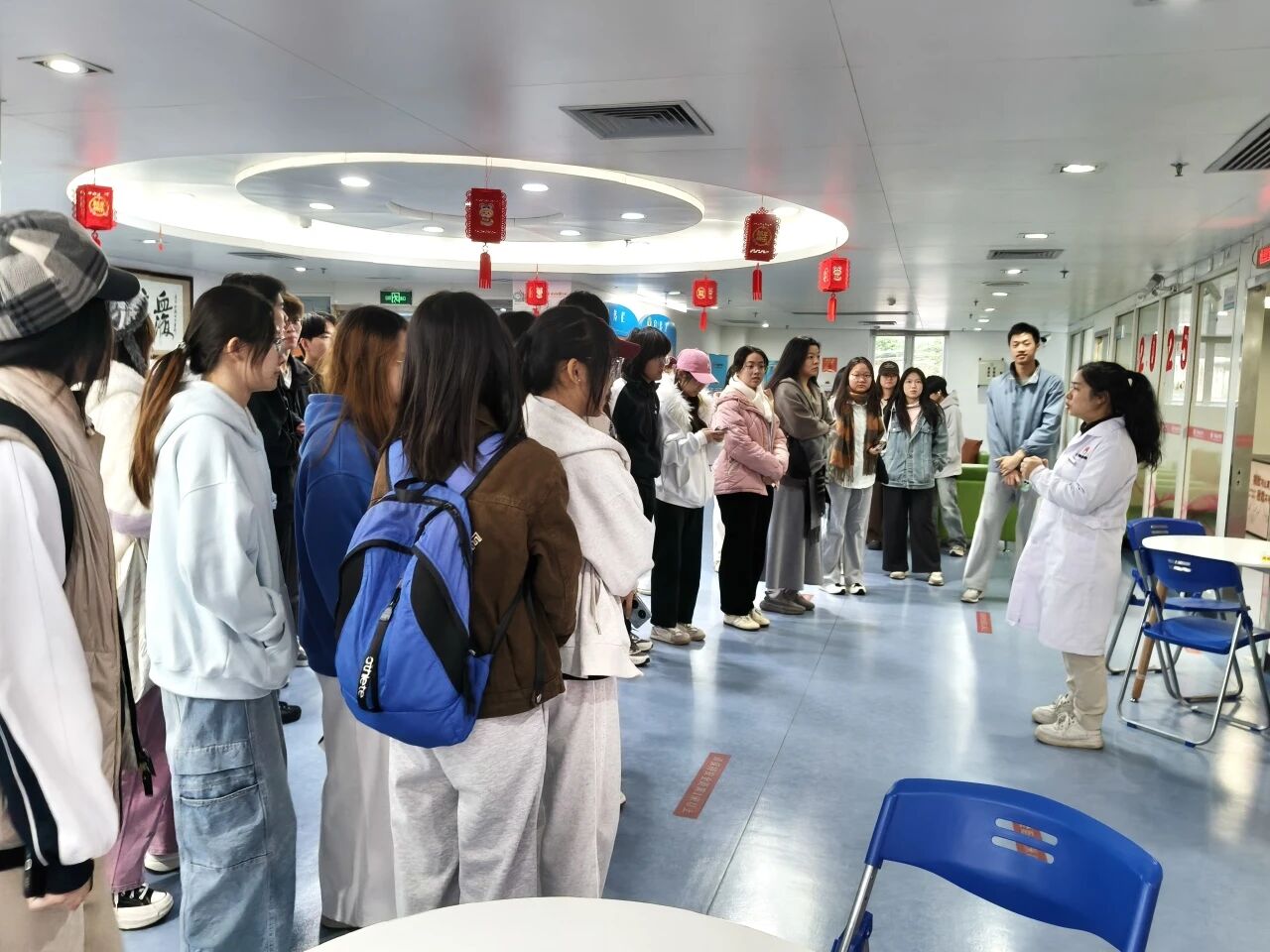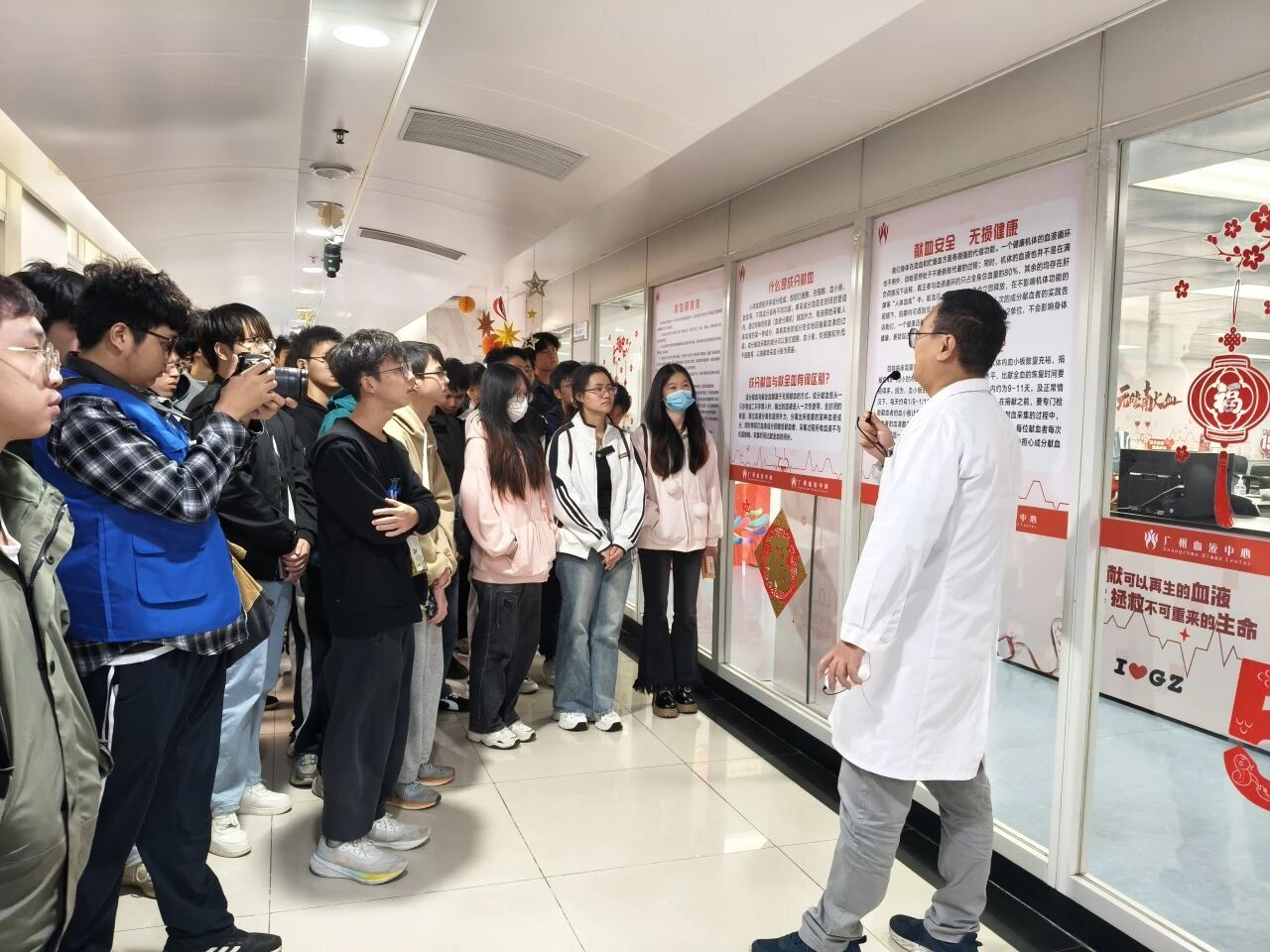 活动伊始,广州血液中心安排专业工作人员担任向导,按照“业务流程递进、知识重点突出”的原则,带领师生代表依次参观血源管理部、机采成分部、检验部、成分制备部、贮血发血部五大核心业务部门。在血源管理部,工作人员详细介绍了全血采集流程与献血者招募标准,让师生们直观了解无偿献血的前置准备工作。走进机采成分部,先进的血细胞分离设备吸引了众人目光,工作人员结合实操演示,讲解了血小板采集的技术原理与临床意义,解答了 “机采献血对身体是否有影响” 等疑问。检验部内,严谨的检测流程、专业的检测仪器令人印象深刻,检验部工作人员强调 “每一份血液都需经过多轮严格检测,充分确保用血安全。成分制备部中,血液如何被分离为红细胞、血浆等不同成分的过程清晰呈现,让师生们知晓 “一份献血能拯救多名患者” 的科学依据;贮血发血部的恒温冷藏库前,工作人员介绍了血液储存的温度要求与发血调配机制,凸显了血液管理的精细化与规范化。
