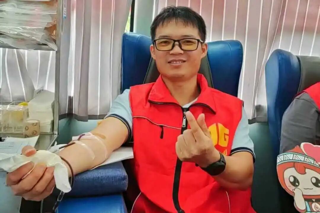 覃祖华热爱运动,健康阳光的形象是“献血无损健康”的生动证明。作为企业党建与群团工作者,覃祖华深知:一人之力有限,众人之力无穷。他将跑步的韧劲转化为公益的热忱,凭借出色的组织能力和天然的感召力,成功将职工凝聚成一支热血队伍。
