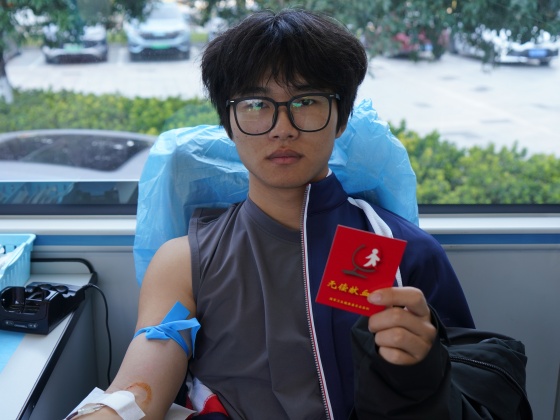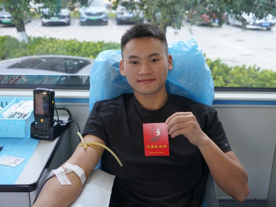 大一学生文龙、曾旺、徐威威、王孝强4名同学组成 “热血小分队”一同前来。手握崭新的献血证文龙,他难掩激动:“这是我第一次献血,作为体育生,能用强健的体魄为社会做贡献,特别有成就感!”
