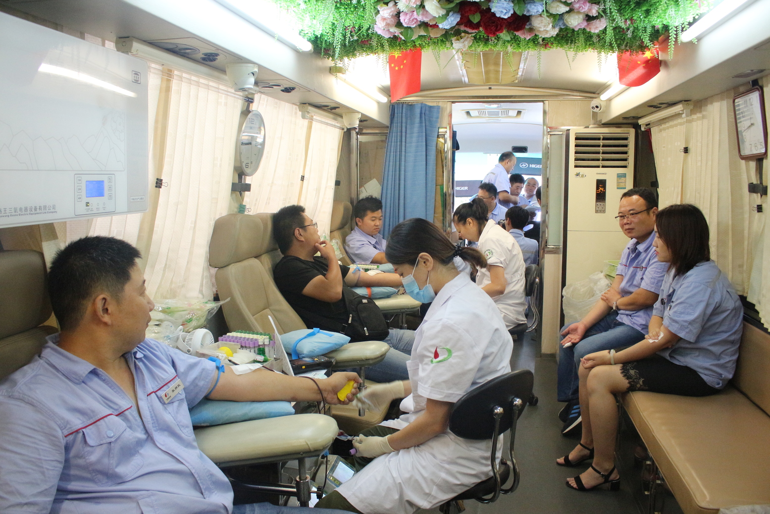 在活动现场,五十余名自愿参与无偿献血的党员干部职工们,有序排队,依次完成了填写报名表、化验、采血等工作。活动现场井然有序,气氛亲切温馨、大家都表示愿意尽自己的一份绵薄之力,奉献爱心。
