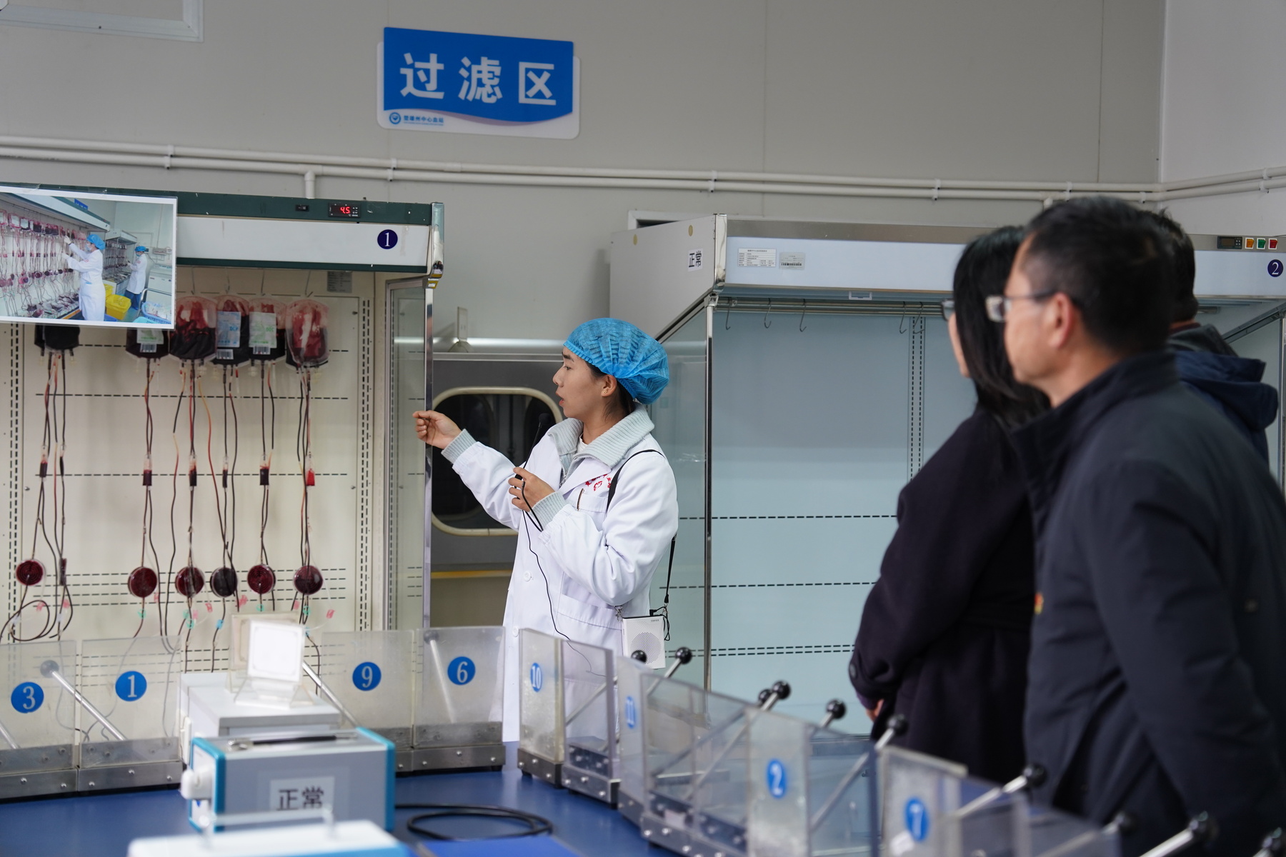 在州血站主要领导的陪同下,党员们实地走访了采血科、检验科、成分制备室、供血库等关键科室,系统观摩了一袋血液从献血者献血征询、血液采集,到实验室检测、成分制备、储存发放的完整业务流程。通过现场讲解与交流,大家不仅对血液安全管理的专业性和严谨性有了深刻认识,更切身感受到一袋血液背后的爱心传递。
