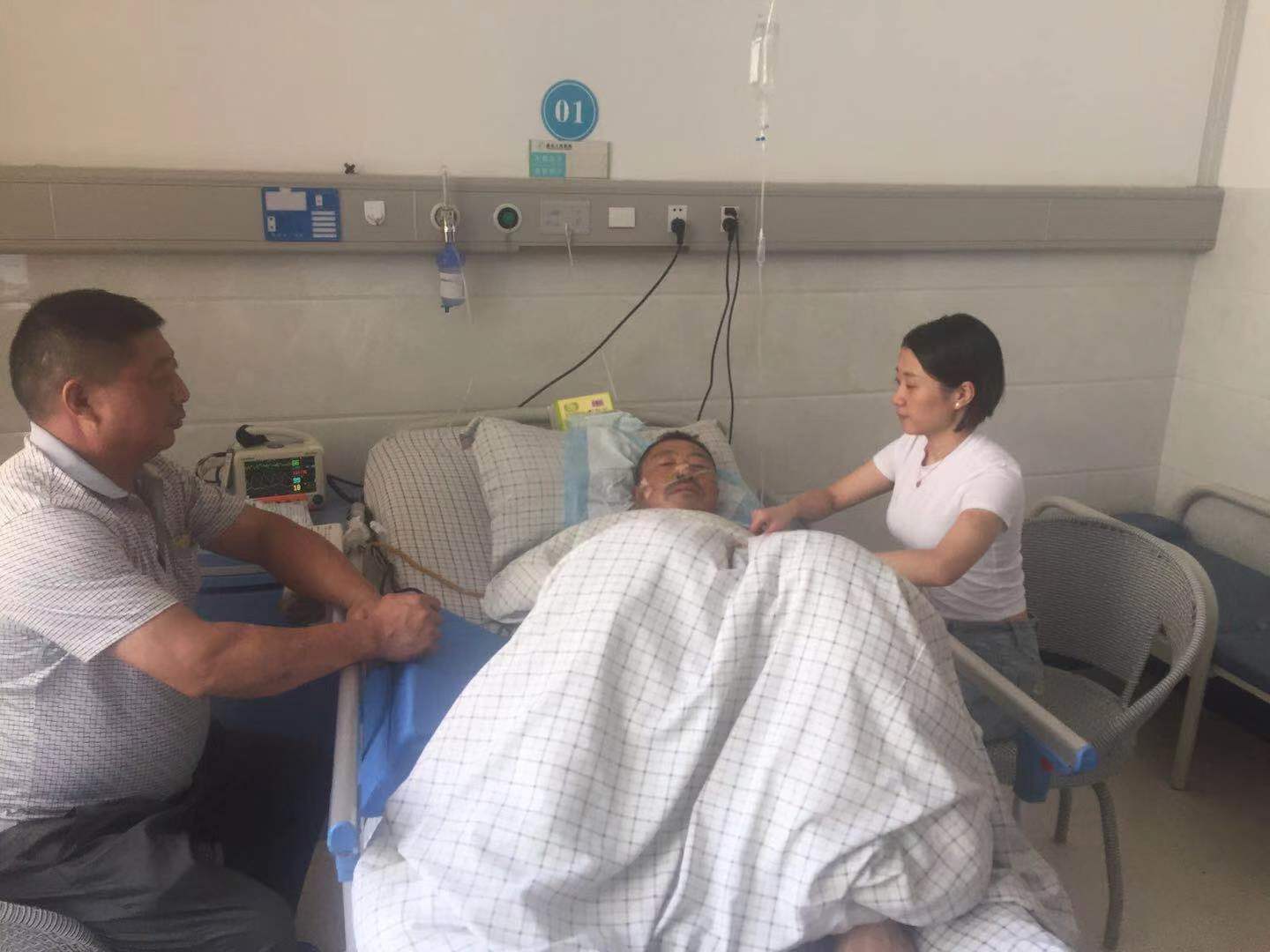 病房里,王国强女儿握着父亲的手,既心痛又高兴。当得知是20多位素不相识的陌生人捐献的血液帮助父亲渡过难关时,她动情地说:“感谢你们,救了我爸爸的命!”