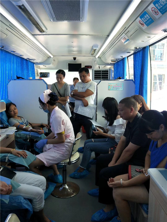 ●8月8日,郴州市中心血站走进经开区开展团体预约无偿献血上门服务,经开区管委会大力支持。当天下午,在社会事务办主任及工作人员的沟通与协调下,走访了湖南罗森尼娜有限公司、郴州市天珑芯科技有限公司、铠楠珠宝、华润湖南医药有限公司郴州公司、郴州市凯程医药有限公司等企业。有关负责人均表示,会积极向企业员工宣传无偿献血,并根据生产任务安排时间开展无偿献血活动。(李孟玲/摄)