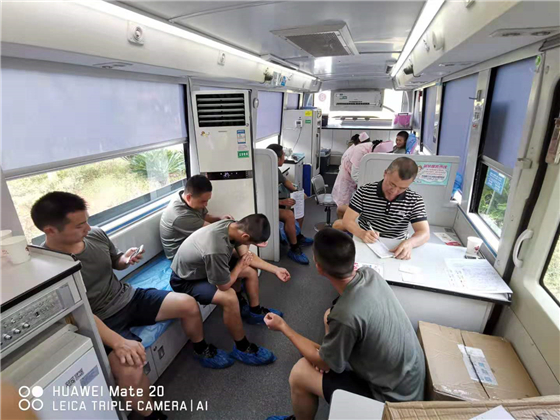 ●8月15日,驻郴32558部队开展无偿献血活动,官兵们踊跃参加无偿献血,用涓涓热血为保障郴州市临床用血的充足供应贡献自己的力量,充分发挥了“军民一家亲”的优良传统,展现了新一代军人“有灵魂、有本事、有血性、有品德”的精神品质。(刘高敏/摄)