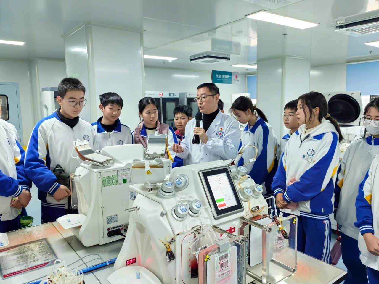 在宣传招募科科长孙鹏的引导下,师生们先后参观了省级科普教育基地、血液供应科、成分制备科等业务科室及未成年人心理辅导中心,并向大家详细讲解了血液采集、分离、检测、储存的全流程,解答了“献血是否影响健康”“血液是如何储存”等疑问,也分享了献血者奉献爱心的感人故事,同学们纷纷感慨:“原来一袋血液要经过这么多严格流程才能挽救生命,无偿献血者太伟大了!”