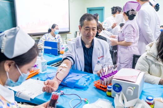 安排好科室工作后,输血科主任王浩匆匆赶去献血地点。“身为输血科的工作人员,我们更清楚一袋血液对于急需输血的患者意味着什么,在临床工作中,我们看到太多患者因及时输血而重获新生,也见过不少因血源紧张而面临的艰难抉择。正因如此,医务人员更应走在无偿献血队伍的前列,用实际行动保障医疗用血,守护患者健康。”他在献血后表示。