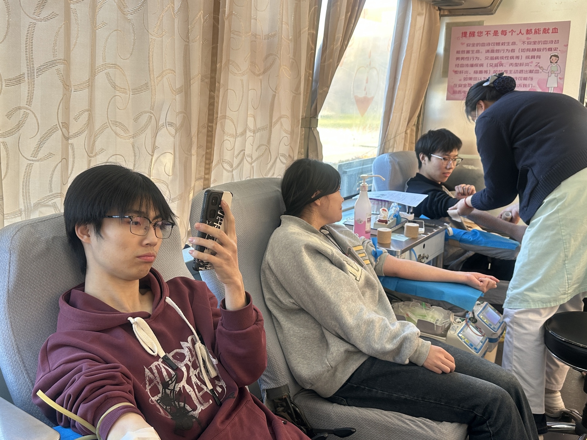 活动当天,尽管冬日寒意渐浓,学校志愿者们仍身着统一蓝色马甲,始终坚守在现场。他们有序引导现场秩序,耐心指导同学们完成线上预约登记,细致讲解献血前的饮食禁忌、作息要求等关键注意事项,用热情驱散了冬日的凉意。