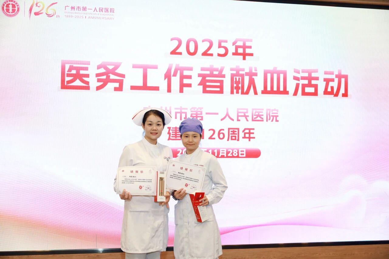 作为临床用血的“守护者”与“需求者”,广州市第一人民医院的医务工作者们比任何人都更深刻地知晓血液对于生命的意义。本次活动中,共有超300名医务工作者参与,累计献血量达94300mL,这不仅是一串沉甸甸的数字,更是一份份滚烫的责任与担当。