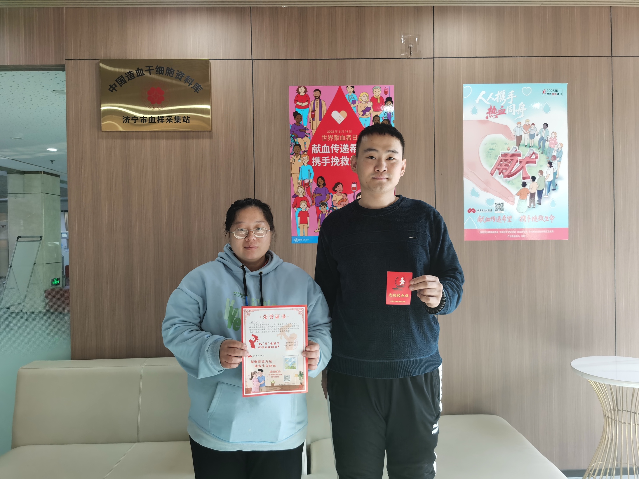 近日,济宁市中心血站的献血大厅里,24岁的年轻父亲许一飞在怀孕妻子李美娴的陪伴下捐献血小板。这不是他第一次伸出臂膀,但却是最特殊的一次——这是为即将出生的宝宝储存的爱意,他用这份延续了六年的热血情怀,给即将出生宝宝的一份生命礼物。