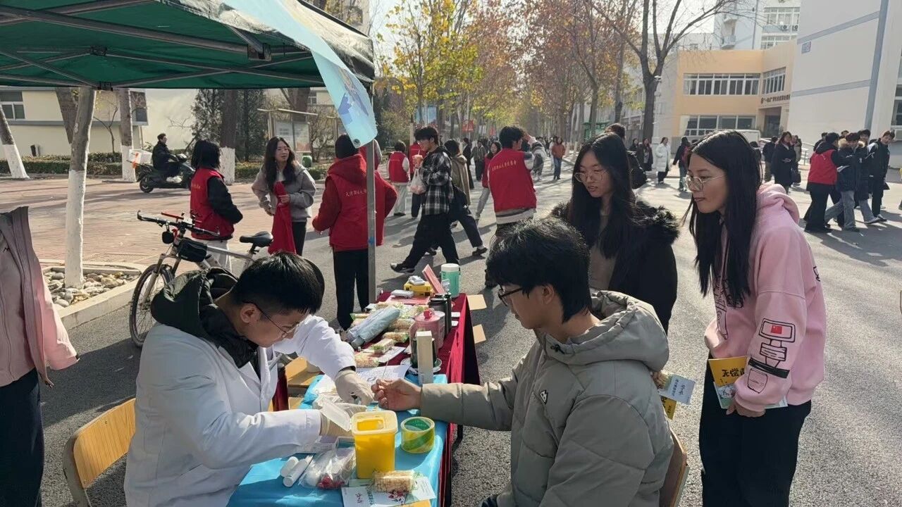 11 月,天津市血液中心机采成分科举办 “无偿献血科普月 青春热血公益行” 高校无偿献血科普活动。