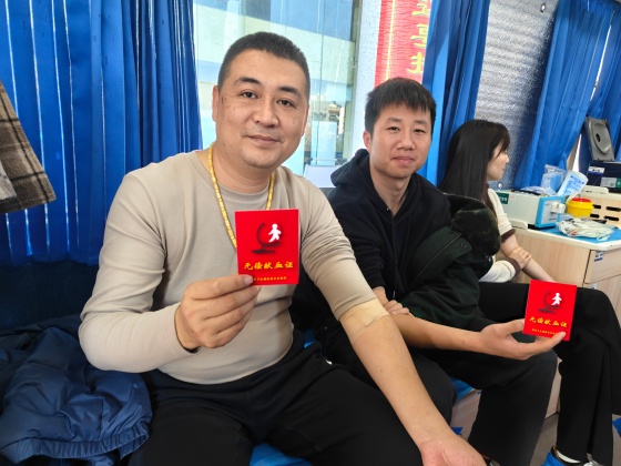 职工唐鹏、雷程等5人本年度已是第二次参加献血,他们表示,无偿献血体现的是爱心,弘扬的是正气,传播的是社会正能量,希望自己坚持献血的爱心义举能带动更多干部群众积极加入到无偿献血者的队伍。