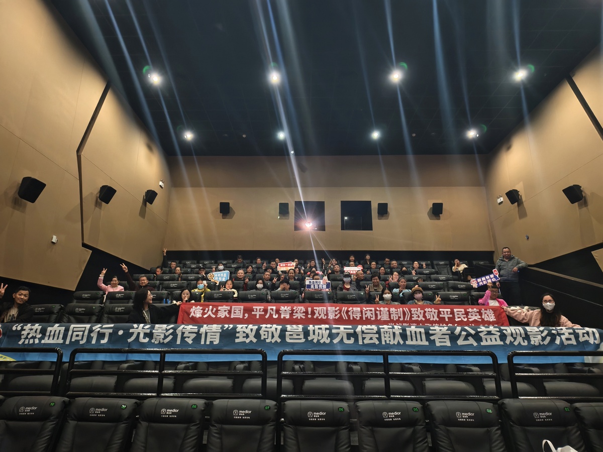 12月12日下午,南宁中心血站携手民族影城,共同举办2025年第二期无偿献血公益观影活动。本次活动以“热血守护生命,光影礼赞奉献”为主题,邀请了近百名南宁市无偿献血者参与,在温馨热烈的氛围中,一同观看了抗日题材主旋律红色影片《得闲谨制》。