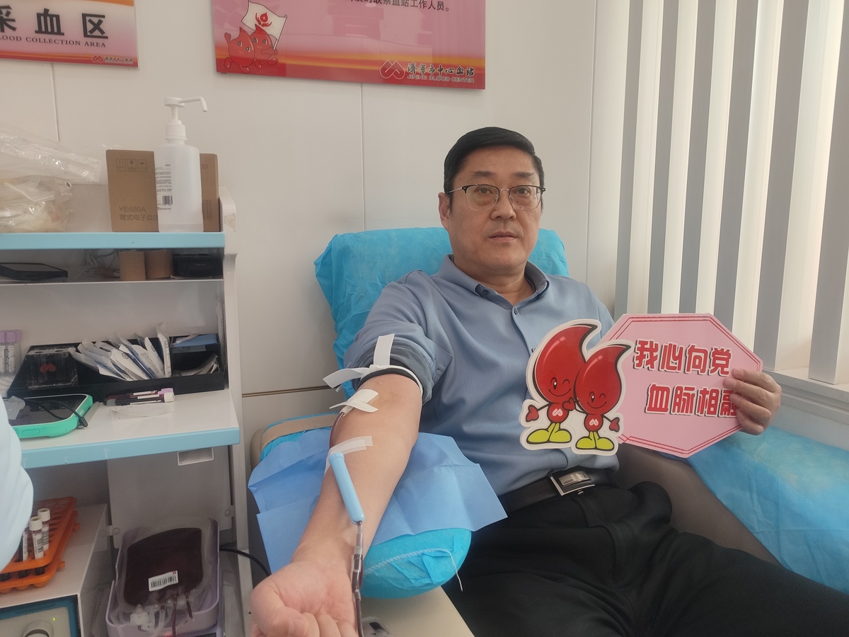 提起齐健主任,熟悉的人都知道,他不仅是采供血战线的“排头兵”,更是无偿献血的“先行者”,深耕无偿献血事业三十余年,始终将保障临床用血视为己任,常年奔走在采血一线,统筹调度、宣传动员,用专业与敬业为采供血工作保驾护航。而在工作之外,他更是身体力行,坚持参与无偿献血,累计献血量达7200毫升,凭借这份沉甸甸的付出,他荣获国家无偿献血奉献奖银奖。这份荣誉,是对他个人奉献精神的高度肯定,更是他多年来坚守初心的生动见证。