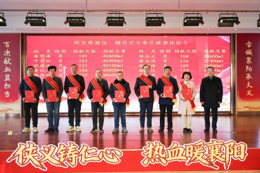 “一袋袋热血,是危重病人手术台上的希望之光,是血液病患者延续生命的坚实支撑,是新生儿降临世间的温暖守护。”襄阳市中心血站负责人表示,此次活动不仅是对献血者的表彰嘉奖,更是对无私奉献精神的传承弘扬。这161名百次献血者,是襄阳无偿献血事业的旗帜与基石,他们用实际行动诠释了“侠义”的真谛——奉献与担当。未来,血站将持续完善献血者关爱体系,让大爱精神在襄阳大地蔚然成风。