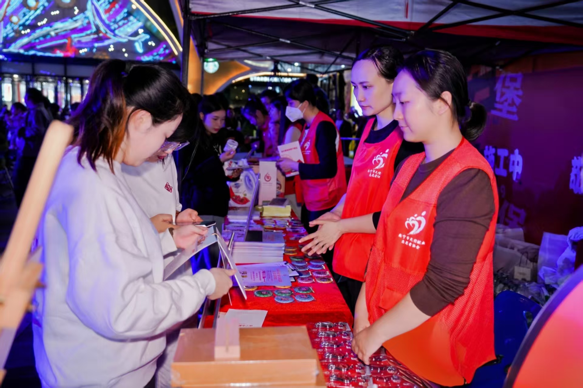 2025年12月20日,在江南万达爱心捐血屋正式启用当天,南宁中心血站同步组织23名党员志愿者在江南万达开展无偿献血宣传招募活动,向广大市民普及无偿献血知识,主动招募附近市民和商场员工参与献血。