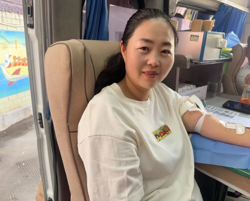 献血过程中,老师们毫不犹豫地伸出自己的手臂,当看着自己的鲜血缓缓流进血袋时,脸上洋溢着温馨的笑容。