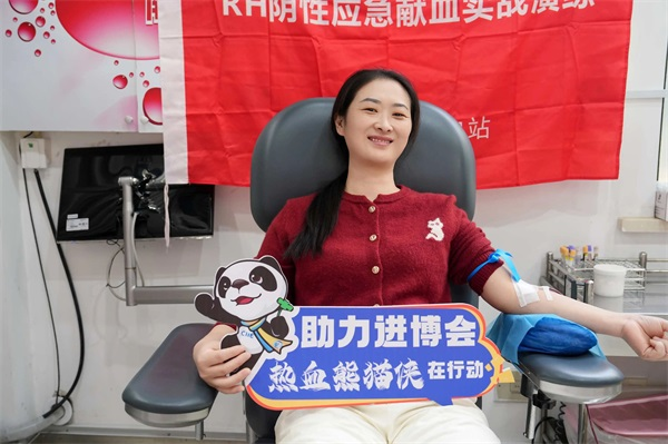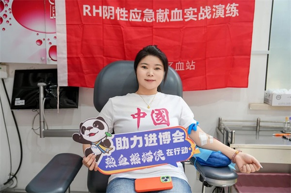张女士,上海荣泰健康科技股份有限公司,2006年开始参与无偿献血,累计献血18次6600ml。她说:“每年进博会献血成了我的习惯,想到自己的血能帮到需要的人,心里就暖暖的,能尽份力特别开心。作为特殊血型拥有者,能在进博会参与应急献血特别有意义,每一次伸出手臂,都像给需要的人递去希望,这份生命接力的温暖,比什么都珍贵,希望更多人加入,让爱传递得更远。”
