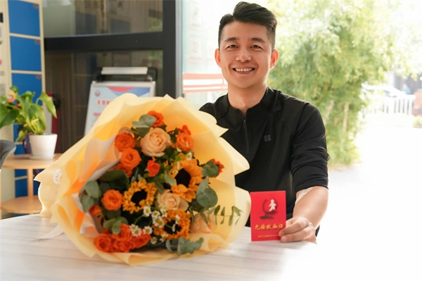 王先生,来自于青浦区法院,2024年加入到青浦区RhD阴性血型献血团队,累计献血4次1200ml。他说:“输出的是热血,涌回的是暖意,助人即是渡己。愿我的热血能给有需要的陌生人多一份希望,也能为进博会的保障服务尽一份心。这于我而言,不是付出,而是这个秋天最温暖的收获。”