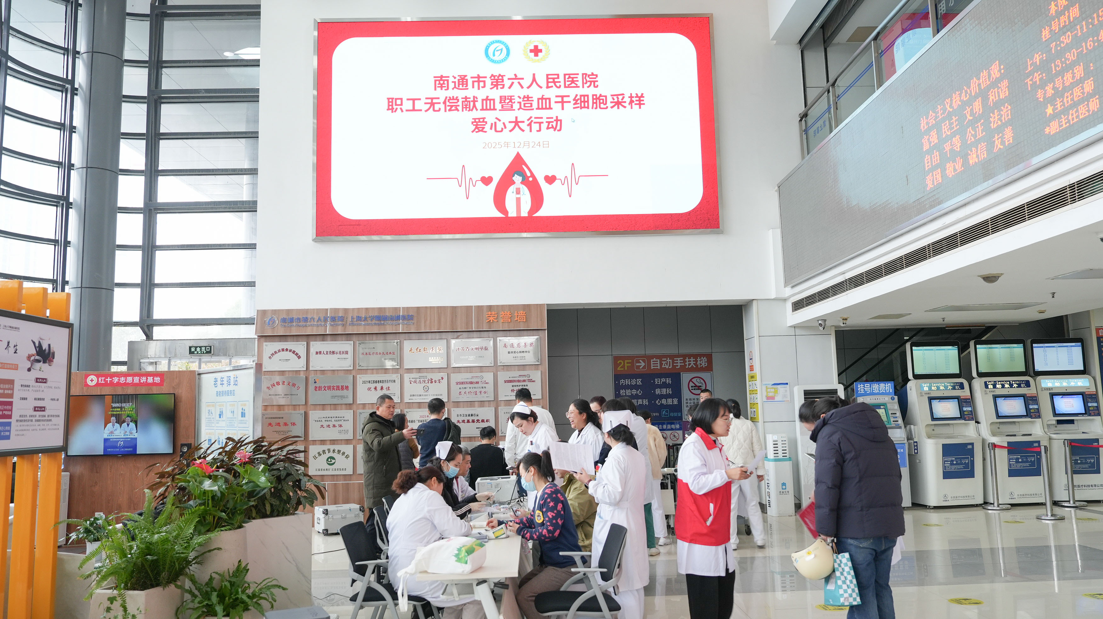 在江苏省第九个无偿献血宣传月之际,为全力保障临床用血需求,南通六院组织开展“职工无偿献血暨造血干细胞采样爱心大行动”。自号召发布以来,已有10余名职工主动前往献血小屋,累计献血超3000ml。12月24日当天,26名医务工作者再次挽起袖口,共计献血8500ml。寒冬虽至,温情不减,白衣战士们用热血为生命续航,以行动传递医者大爱。