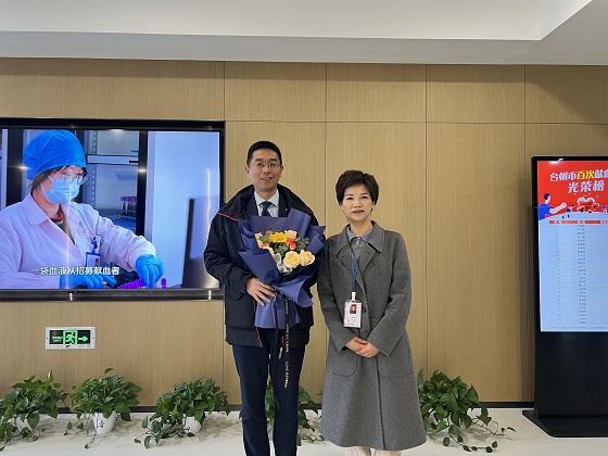 12月22日,无偿献血者叶建国再次走进台州市中心血站捐献机采血小板,成为台州市首位献血次数突破400次的无偿献血者。