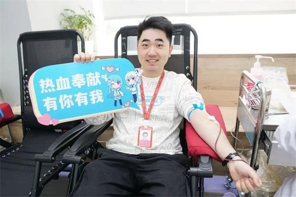 第一次献血的仇同学,献完200ml后依然精神抖擞。他幽默地表示:“刚才看着自己的血液流入血袋,感觉像是在进行一场生命的‘数据传输’。我们平时用代码互联世界,今天是用热血连接生命!”作为第一次献血的“萌新”,他坦言最初有点怕针头,但想到自己的血可能会救回一条命,瞬间勇气值拉满。