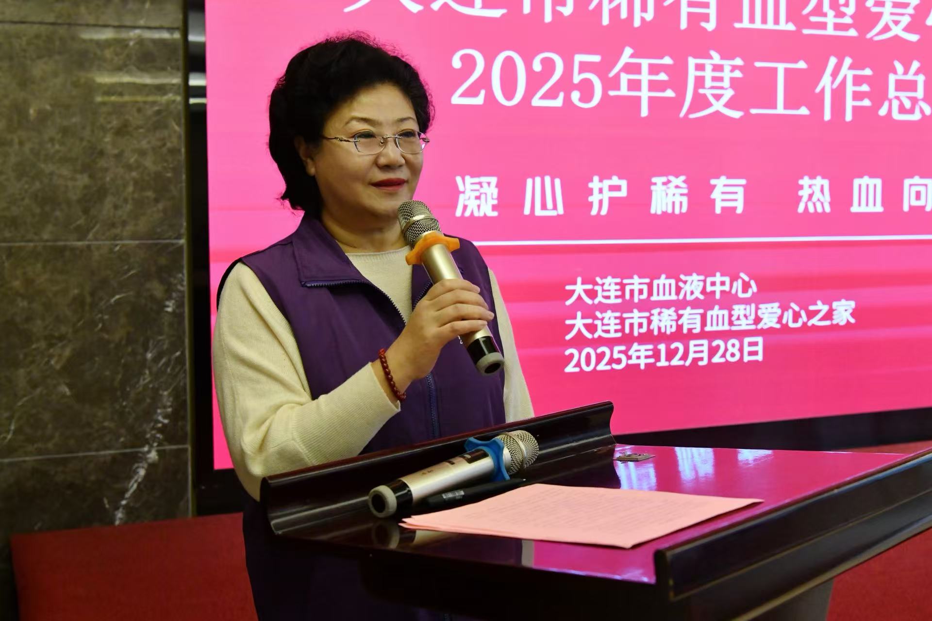 大会伊始,大连市稀有血型爱心之家宗爱玲队长作年度工作报告。她说,大连市稀有血型爱心之家成立八年来,志愿者们因稀有血型结缘,以“熊猫侠”之名践行公益使命,8年间累计捐献热血超40万毫升。2025年,团队秉持“血型稀有,大爱无疆”理念,聚焦应急献血保障、宣传招募、多元公益及品牌建设四大任务。面对稀有血型临床用血的特殊需求,爱心之家交出亮眼答卷:全年组织应急献血84人次,献血量达31400毫升,其中14名志愿者献血2次以上。