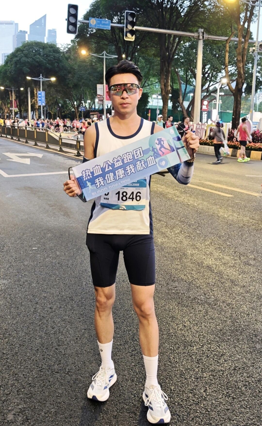 7.熊磊明:“奔跑与献血,是我多年来一直坚持的两件事。在我人生第50场广州马拉松结束后,即将迎来第51场黄埔马拉松,同时我也预约了第45次献血。跑步+献血=生命的双重多巴胺。”