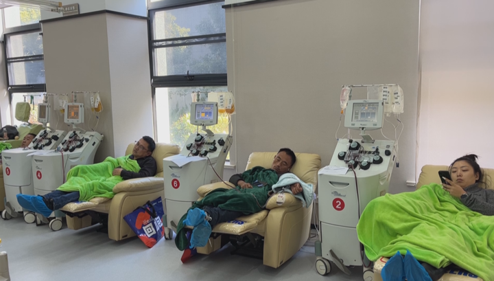 假期第二天,在市中心血站的机采室内,志愿者陈福雷已累计捐献全血5次1700毫升,血小板86次152个治疗量,他坐在靠窗的位置等候献血:“下雪天出门的人少,但病人用血不会因为天气而减少。”他转过头看向窗外,“这时候更需要我们。”