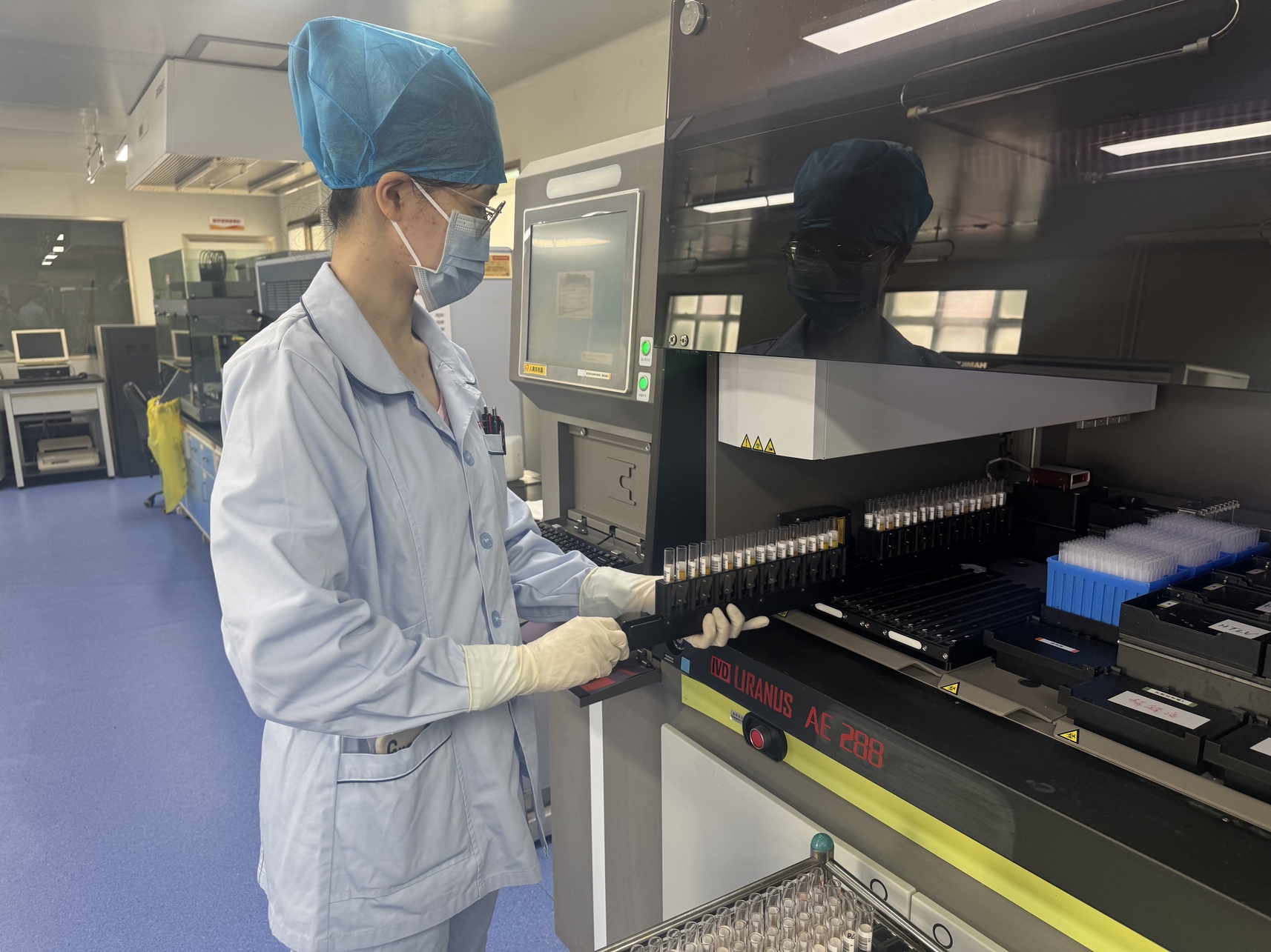 检验科里,仪器屏幕闪烁着幽蓝的光。每一份血样都在这里经历最严格的检测的核酸检测、传染病筛查、血型复核,十余道程序层层把关。工作人员的目光在数据与曲线间仔细巡看,任何微小异常都逃不过他们的专注。在这里,没有“大致合格”,只有“确认安全”。每一份检测报告上的签名,都是一份郑重而庄严的承诺。