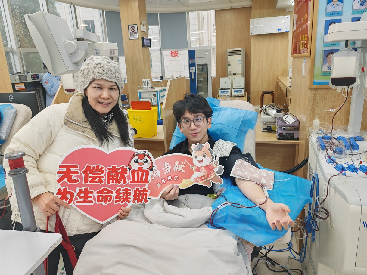 而今天,她的身边多了一个略显紧张却目光坚定的年轻人——儿子覃斯瀚,刚从哈尔滨放假归来,在冰封的校园里,他时常看到母亲在宣传无偿献血的画面。在母亲的影响下,回家的行囊刚放下,便主动提出:“妈,我想参加捐献血小板。”覃斯瀚说,“她做的是一件平凡又有意义的事,我想跟着她一起做,也会一直坚持下去。”说话时,他望向母亲,眼神里有淡淡的骄傲。辛燕在一旁,微笑着,没有多言。有些传承,无需刻意嘱咐,行动本身已是最好的话语。