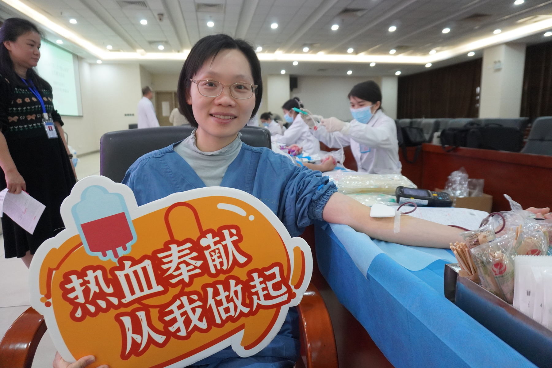 “快帮我拍一张照片!”血液科护士长何艳梅在献血后兴奋地举起献血证说,“我要发朋友圈,积极宣传无偿献血,希望我们科的患者能用上救命血液,早日康复!”她的话语朴实却有力,道出了每一位临床医护人员的心声。