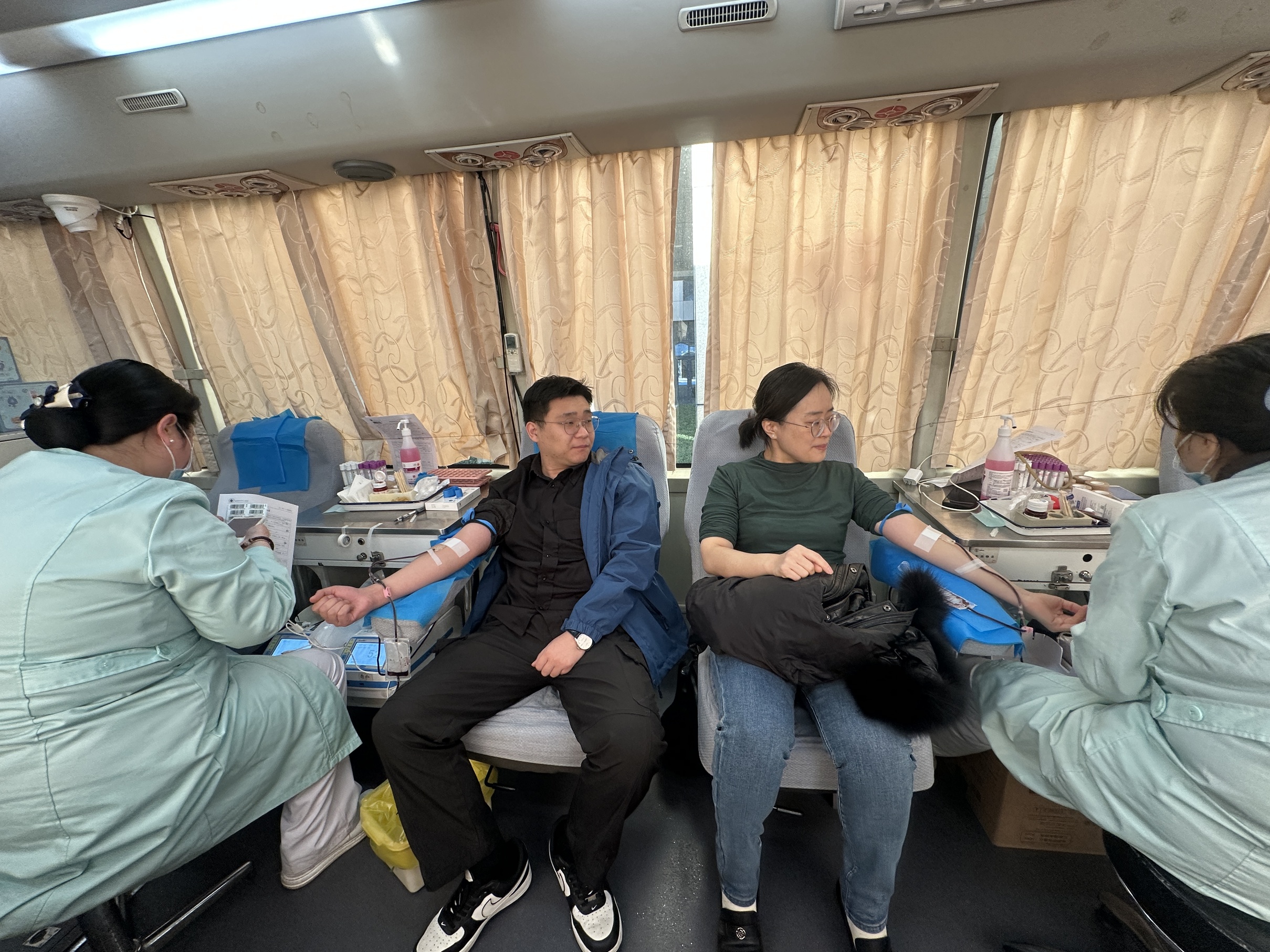 献血现场,各类身影坚定而执着。有肩负急诊急救重任的急诊科医护,他们始终坚守战备岗位,利用工作间隙赶来奉献热血;有同科室的同事们结伴而来,献血时彼此鼓励,并肩为生命助力;还有携手到场的职工夫妻档,以共同献血的特殊方式传递爱心,成为现场一道暖心风景线。